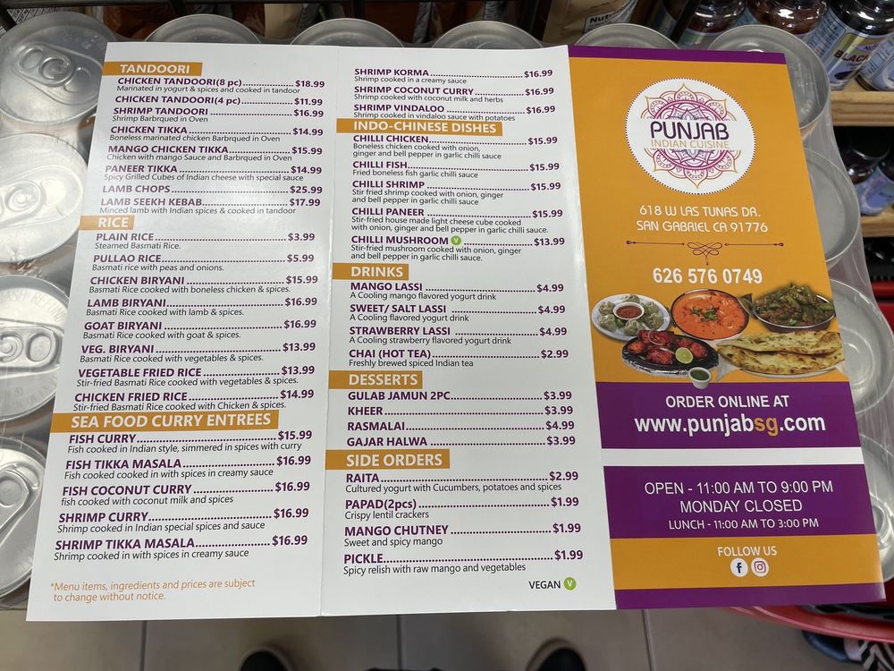 Introducing Punjab Indian Market and Cuisine, a gem in San Gabriel offering a variety of Indian dishes. From crispy samosas to flavorful curries, their menu is full of vegan and non-vegetarian options. The cozy ambiance and attentive service make it a great spot for a quiet dinner or a quick takeout meal. Don't miss out on their chicken tikka masala and tandoori chicken, as praised by loyal customers. The market attached is a bonus, offering unique items like Himalayan hair oil. Prices are reasonable, and the clean, well-stocked market adds to the overall experience. Punjab Indian Market and Cuisine is a must-visit for authentic Indian cuisine in Los Angeles.